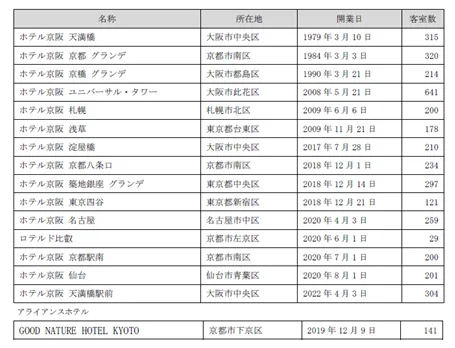【ご参考】ホテル京阪店舗一覧