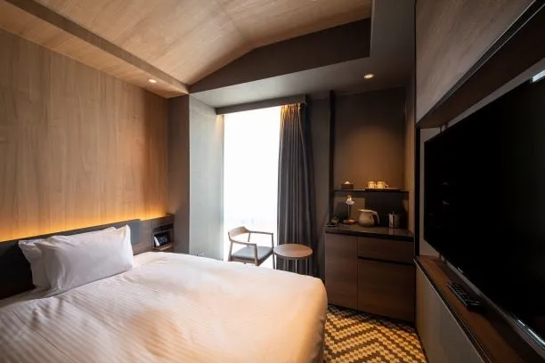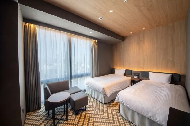 ホテルの設えは、「現代の旅籠(はたご)」をコンセプトとし、竹のアートや真壁づくり、格子をデザインに取り入れ、「和」の落ち着きを表現しております。一方、客室内のタブレットで、照明・空調などの一元操作に加え、サブスクリプションスタイルの動画配信サービスを客室のTVでお楽しみいただけるなど、最新の機能性を備えております。