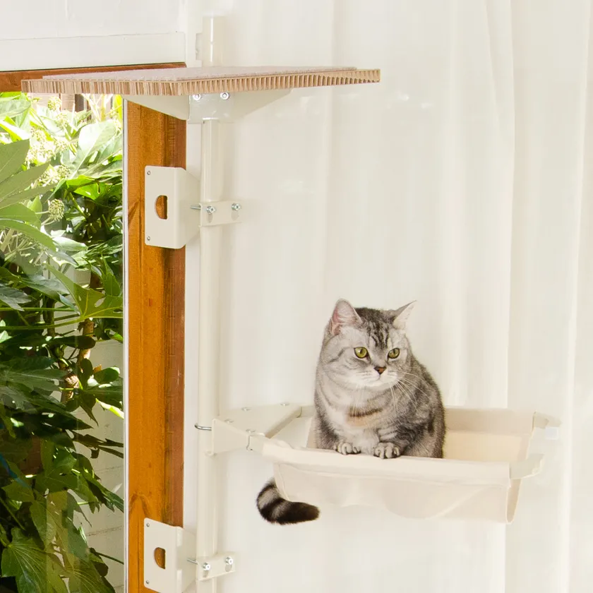 日当たりの良い窓辺での日向ぼっこを存分に楽しめる、窓際設置の「ねこゴロン」だからこその商品。