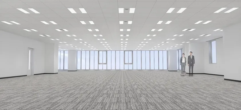 各階貸室の契約面積は、約133坪。無柱空間の貸室は、レイアウトの変更が容易なグリッド式天井システムを採用することで、フレキシブルな活用を可能にしました。また天井高は2.8mを確保し、窓面高さ2,600mmのガラスカーテンウォールを採用することで、採光に優れた開放的な執務空間を実現しています。