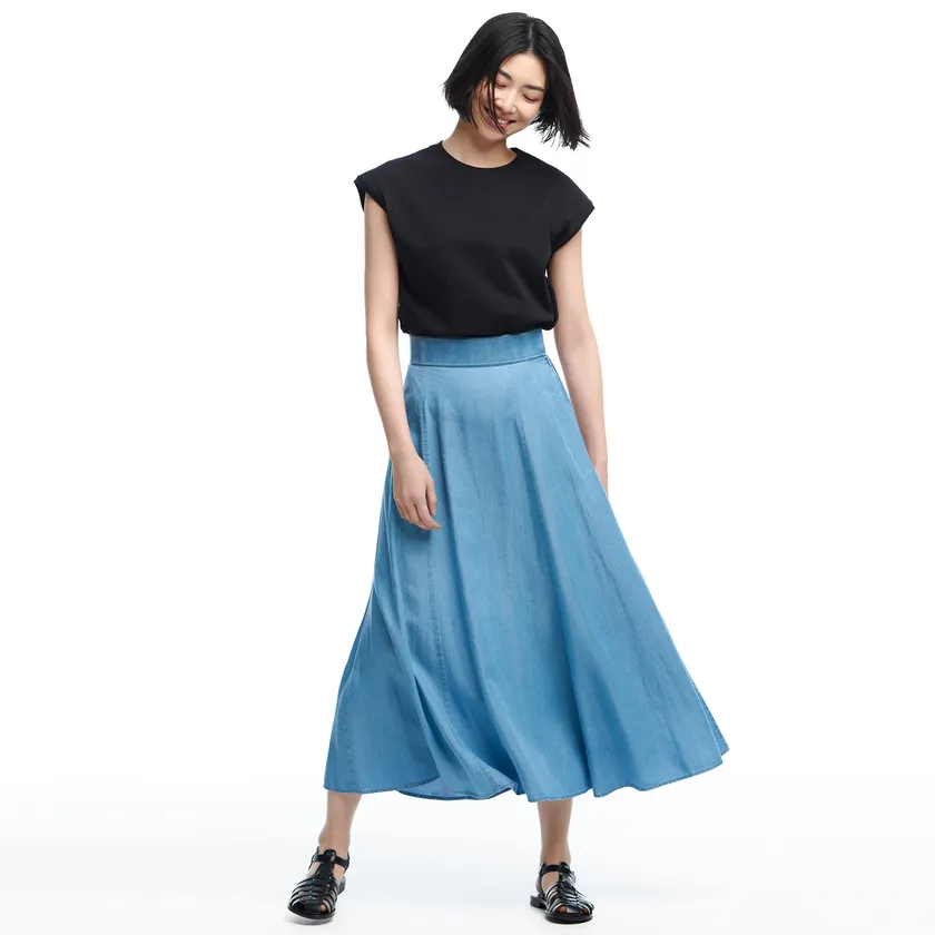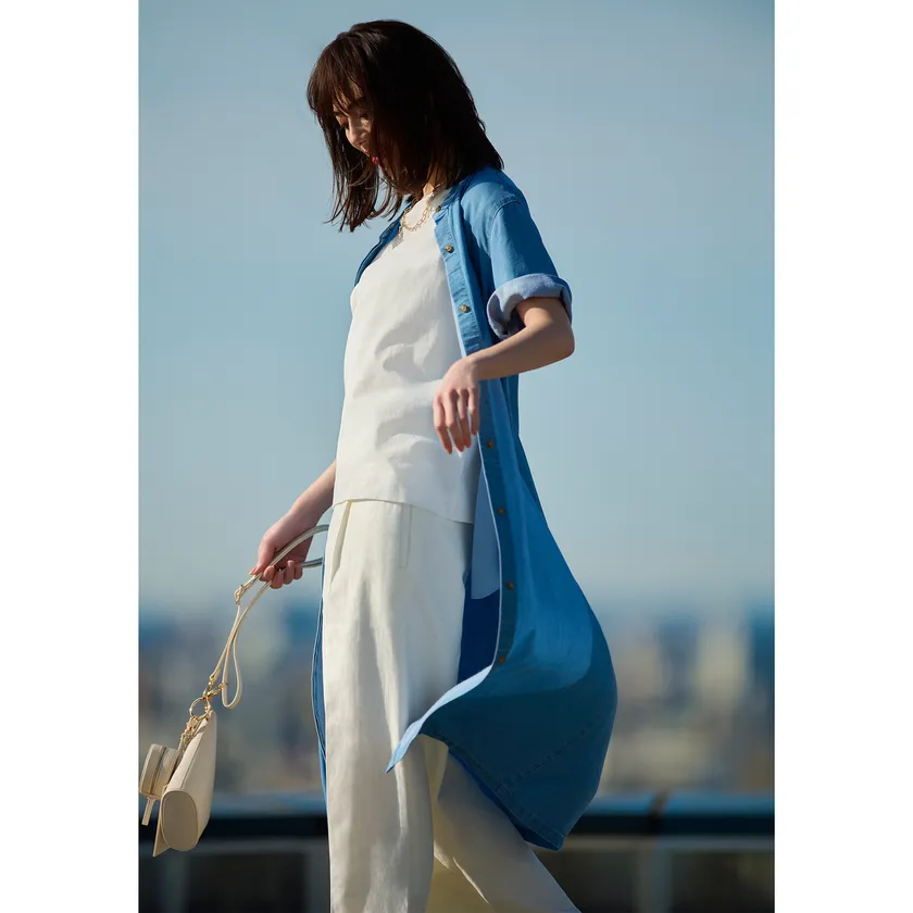 そして、「ライトデニムコレクション」は、今季トレンドに合わせ、ワイドパンツのほか、デニムワンピース、デニムシャツ、それにデニムマーメードスカートなど、種類も豊富に展開。この夏のデニムブームを、多種多様な着こなしでお楽しみください。