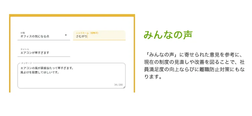 社員から会社への意見や要望を投稿する目安箱のような機能です。