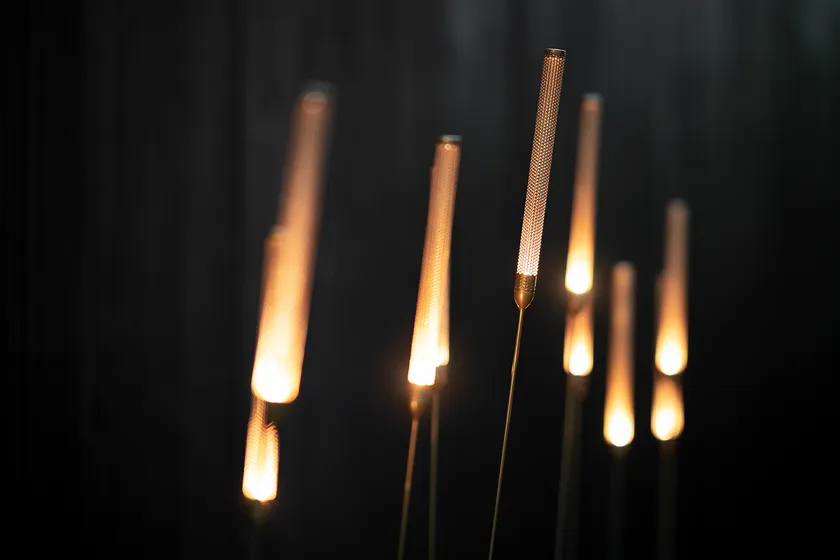 INAHO(2013)/人が近くを通るとセンサーが感知し、穂が揺れ、光り始める。Lexus Design Awardを受賞した作品。