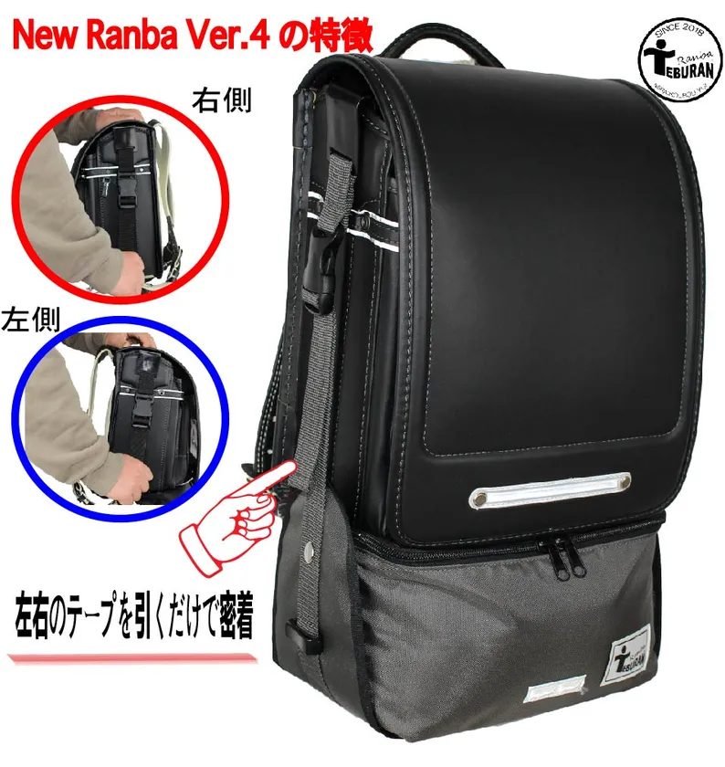 ランドセル専用バッグシリーズにはサイド装着タイプのTEBURAN(てぶラン)とアンダー装着タイプのRANBA(ランバ)があります。