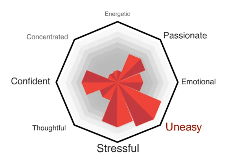 ・侵攻後現在の音声は「ストレス」がさらに高くなり、「不安」の要素が高く検出されている(図1)