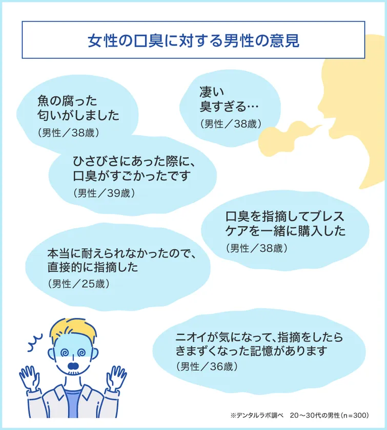 気になった女性の口臭に対して、男性はどう思ったのでしょうか。寄せられたコメントの一部をご紹介します。