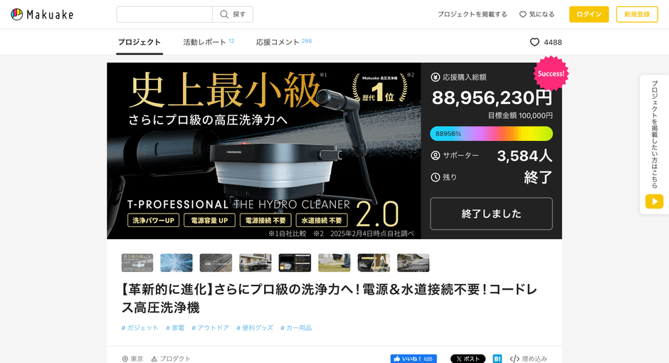 第2位【88,956,230円達成】 【革新的に進化】さらにプロ級の洗浄力へ!電源&水道接続不要!コードレス高圧洗浄機