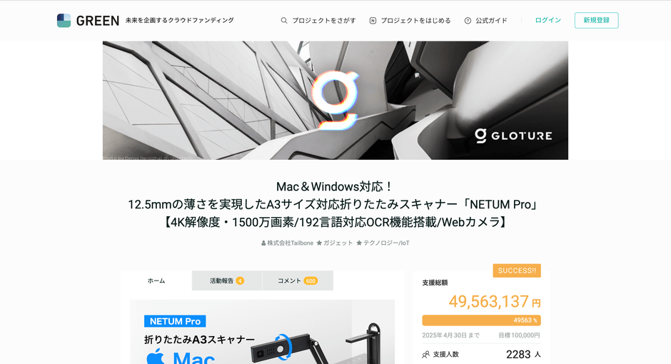 第5位【49,563,137円達成】 Mac&Windows対応!12.5mmの薄さを実現したA3サイズ対応折りたたみスキャナー「NETUM Pro」【4K解像度・1500万画素/192言語対応OCR機能搭載/Webカメラ】
