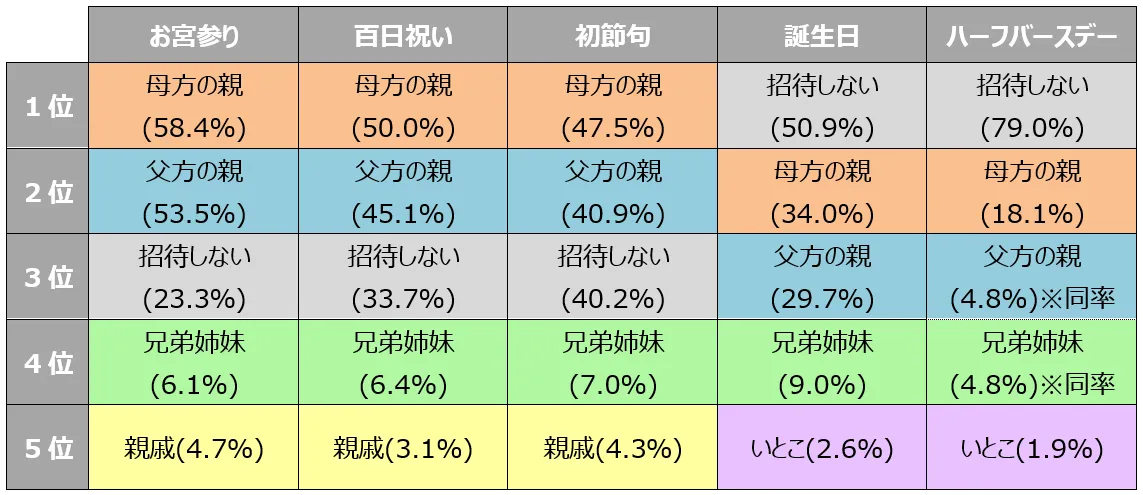 伝統行事は「母方の親」を招待。誕生日やハーフバースデーには「誰も招待しない」が多数