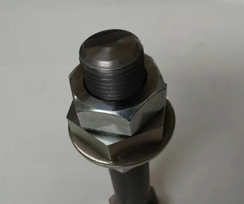 そこで新しく考案した『タイヤ脱輪防止ナット』!!このナットの特徴はダブルナットにし、下部ナットが凸型で上部ナットは凹型のナットになっており凸型と凹型が噛みつくことによりネジが緩まない構造になっております。小さな対策で大きな事故を防止することが出来ます。ぜひ、ご検討いただきお問い合わせお待ちしております。