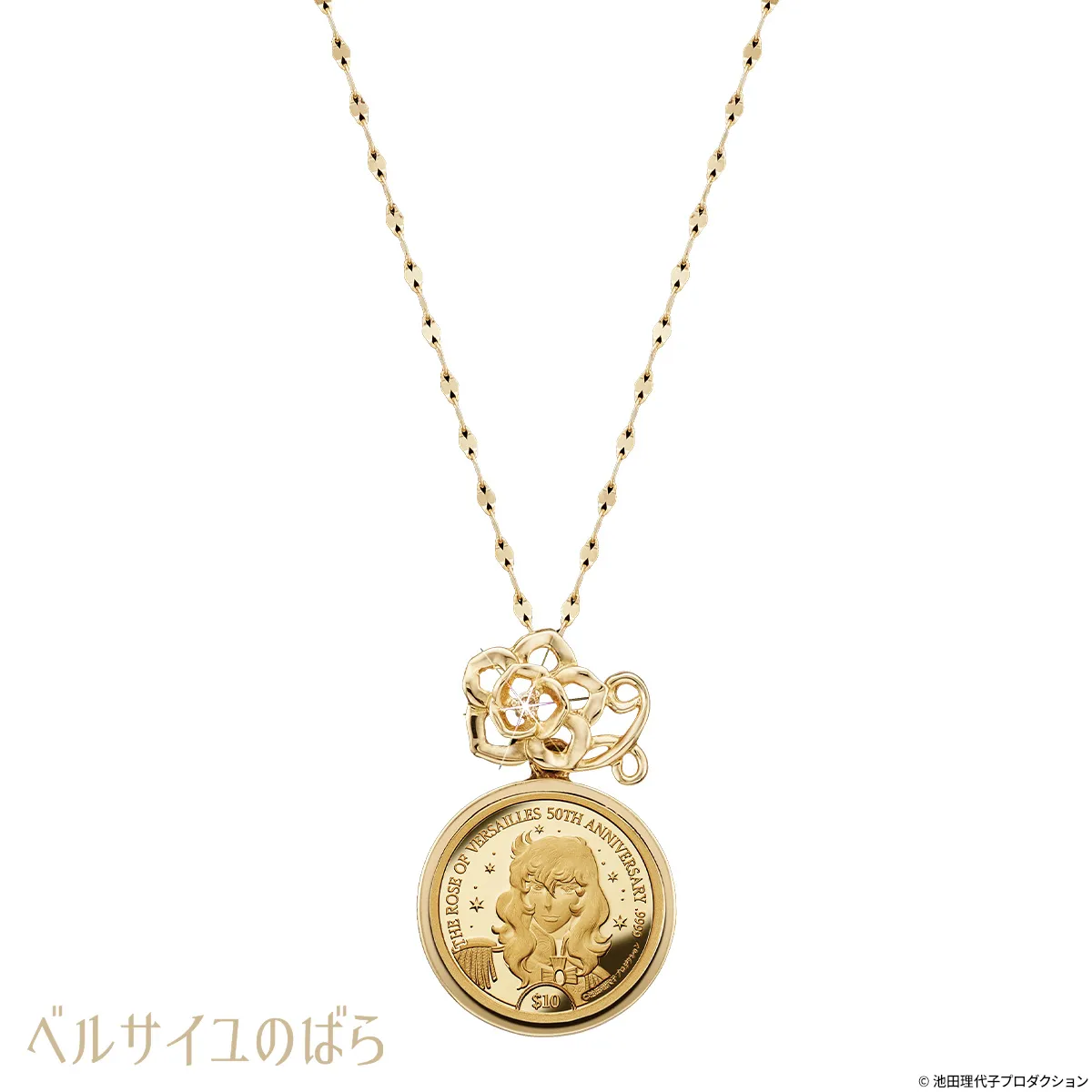 『ベルサイユのばら』の誕生50周年を記念して、 オスカルの肖像が黄金に輝くコインペンダントが登場!