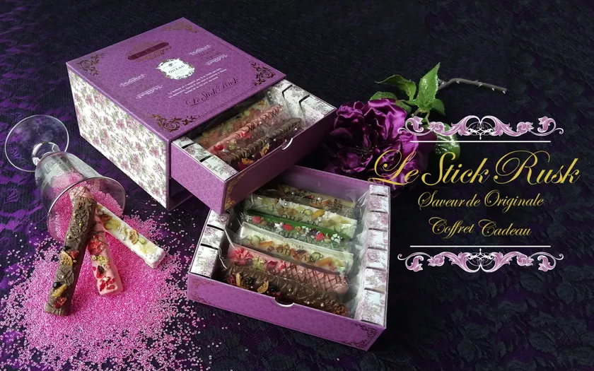 ひとつひとつが上品なトッピングで飾りつけられたスティックラスク。