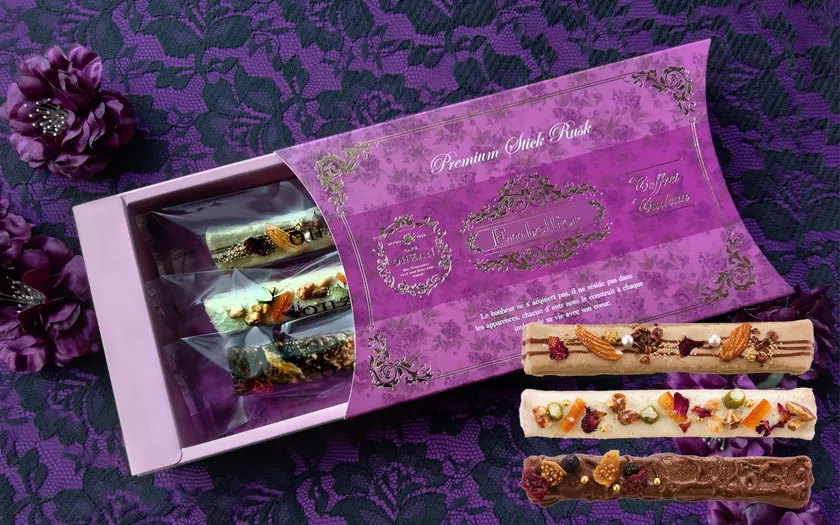 3本入 アンベリールに入った3種のスティックラスクに加え、ストロベリーチョコレート&シャンパン、抹茶チョコレート&ブランデー、レモンチョコレート&日本酒が仲間入り。今しか味わえない魅惑のマリアージュをお試しください。