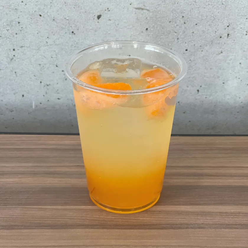 みかんのコンクに炭酸水を合わせて爽やかな味に仕上げました。ゆず茶をブレンドし、奥深い風味をお楽しみください。