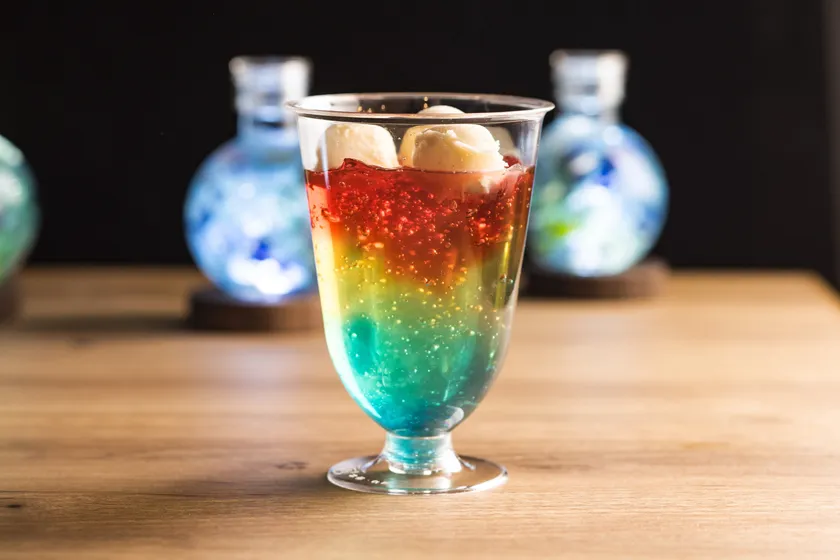 クラゲ大水槽「くらげ365(さんろくご)をイメージし、4色のゼリーの上にクラゲに見立てたアイスをトッピング!
