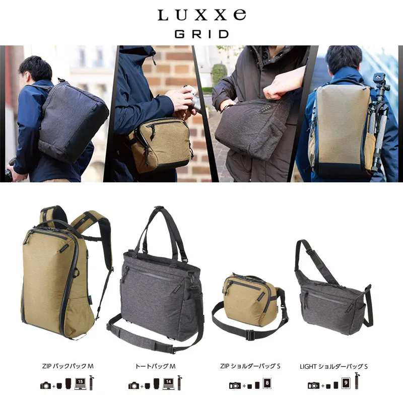 ファッションと機能を融合した「LUXXe(ラグゼ)」より、人気の街使い派向けカメラバッグ「グリッド」シリーズに4種を新発売!