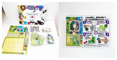 「TAKUMI ZOO」は、動物園経営ボードゲームです。地形をパネルで作って土地を開拓し、12ターンの間、地形に合わせて動物を売り買いし、お金とポイントを稼いで、いかに立派な動物園を作りあげたかをポイントで競う、“拡大再生産”ゲームです。最後に勝敗を分けるのは、お金ではありません。いかに人気の動物を集めて動物園の魅力を高めるかがポイントになります。