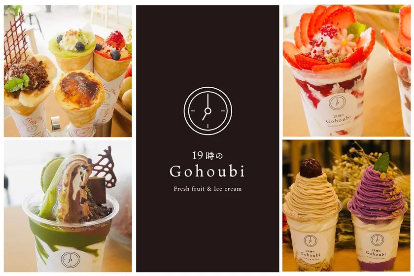 “深夜23時まで営業のソフトクリーム&クレープの専門店”で話題の「19時(いくじ)のGohoubi」。店名には「日常の中に少しの喜びとご褒美を」、「コロナ禍で大変になった育児に、19時のご褒美」という、2つの思いがこめられています。「夜遅くに食べられる本格スイーツ」とSNSで話題になり、1店舗目のオープンからわずか1年間で、4店舗目のオープンとなります。また、兵庫県初出店となります。
