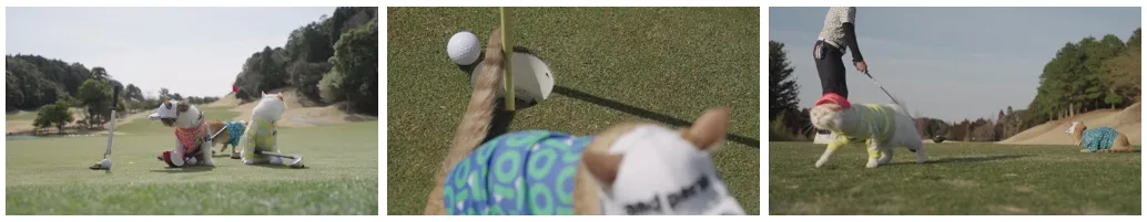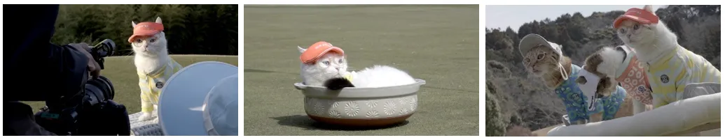 本動画では、“猫のためのゴルフマナー”と題し、「ミスショットの時は“ニャー”ではなく“ファー”です」、「しっぽでカップインしてはいけません」など、15にも及ぶ“猫版”のNGゴルフマナーを、かわいらしい猫の実演と共に紹介します。芝生でまったりとくつろぐ様子やクラブとじゃれる様子など、猫たちの自由奔放で愛らしい姿は必見です。本動画は、好奇心旺盛な猫のように、ゴルフを自由に楽しむ心を大切にしてほしいというメッセージを込めて制作しました。サンバイザーやポロシャツといったアンパスィのウエアを全身にまとった猫のルックスにもご注目ください。