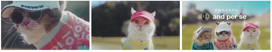 スポーツウエアブランド「アンパスィ」10周年記念。 かわいい猫ゴルファーに悶絶!?自由すぎるゴルフマナー動画「猫のためのゴルフマナー講座」公開。 ゴルフウエア姿で“猫版NGマナー”を実演! しっぽでカップイン、ミスショットに「ニャー(ファー)」など。