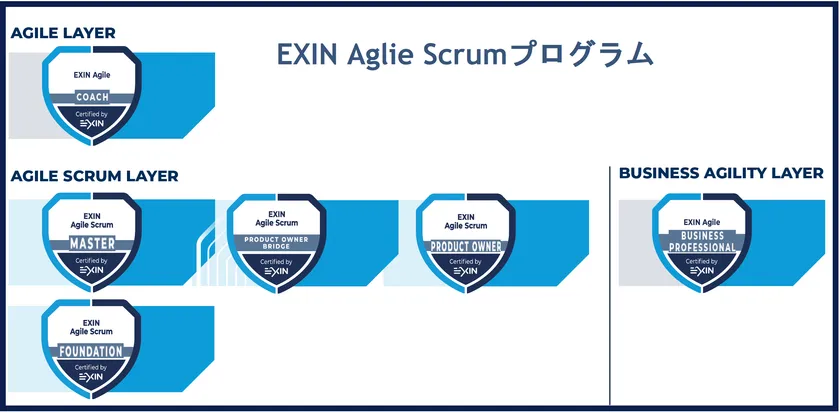 EXIN Agile Scrumプログラムは、アジャイル、アジャイル・スクラム、ビジネスアジリティの3つの領域から構成されており、ソフトウェア開発から組織文化変革、ビジネス領域までカバーしています。