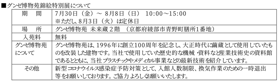 グンゼ株式会社(本社:大阪市北区、社長:佐口 敏康)の創業の地、京都府綾部市にあるグンゼ博物苑では、期間限定で「蚕織錦絵特別展」を開催いたします。