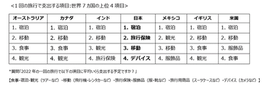 <1回の旅行で支出する項目:世界7カ国の上位4項目>