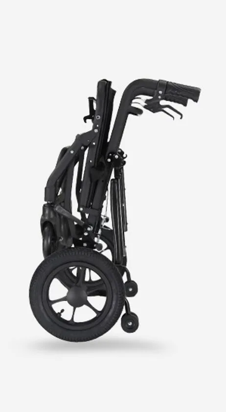 折りたたみ式フレーム、3段階調節フットサポート、安心・安定の制動用ブレーキ付きです。夜間の外出も安心な反射板や持ち運びに便利な持ち手があり、また背面には収納に便利な大型ポケットも付いています。こちらもノンパンクタイヤを採用しています。