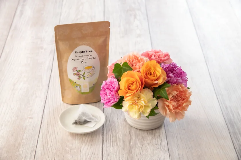 母の日 ピープルツリー「有機フレーバーティー(ローズ)」とアレンジメントのセット