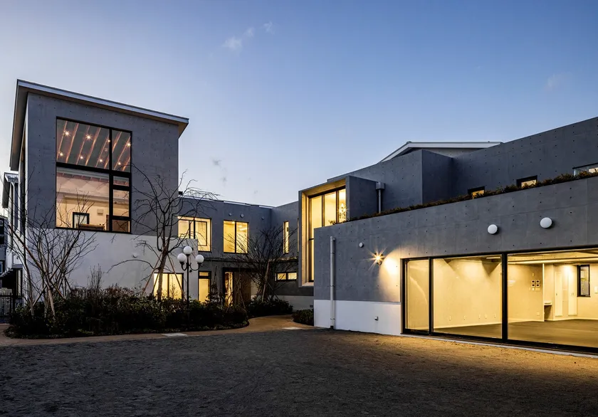 「暮らしの医療機関」をテーマに、小さな街のような空間が広がる「LIFE MEDICAL CARE いずみ」。内科・小児科・整形外科のクリニック、薬局はもちろんのこと、薬局監修のカフェ、シニア向け家事付きシェアハウス、トレーニングスタジオ、ワークショップなども開催できる地域交流室に加えて、犬のお預かり&しつけ施設まで取り揃えています。犬を介在させて人間の心身機能の維持や回復を目指す「動物介在活動」を敷地内で行う点では、医療業界では日本初の試みとなります。医療施設とは思えないモダンな外観に、病気の有無に関わらず、誰もが気軽に訪れる施設、地域の交流の場を目指しています。