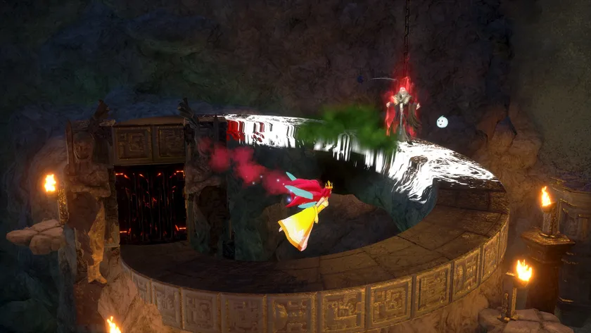 ミリアムは、他のゲームシリーズのキャラクターとの出会いにも慣れています。ショベルナイトの鎧を着て戦いに赴いたり、馬に乗ってKingdom Two Crownsの死地を駆ったり、ブラスフェマスの恐怖に立ち向かったり、Mighty Fight Federationにゲスト出演したりしています。しかし今回の主人公は、ミリアムではなく、『Child of Light』のオーロラがこの悪魔の城を探索することになります。