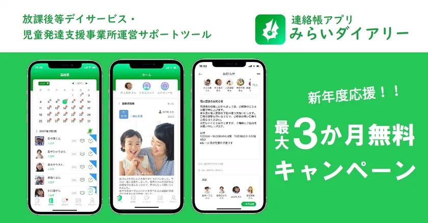 連絡帳アプリ「みらいダイアリー」最大3か月間無料トライアルを 放課後等デイサービス・児童発達支援事業所対象で開始