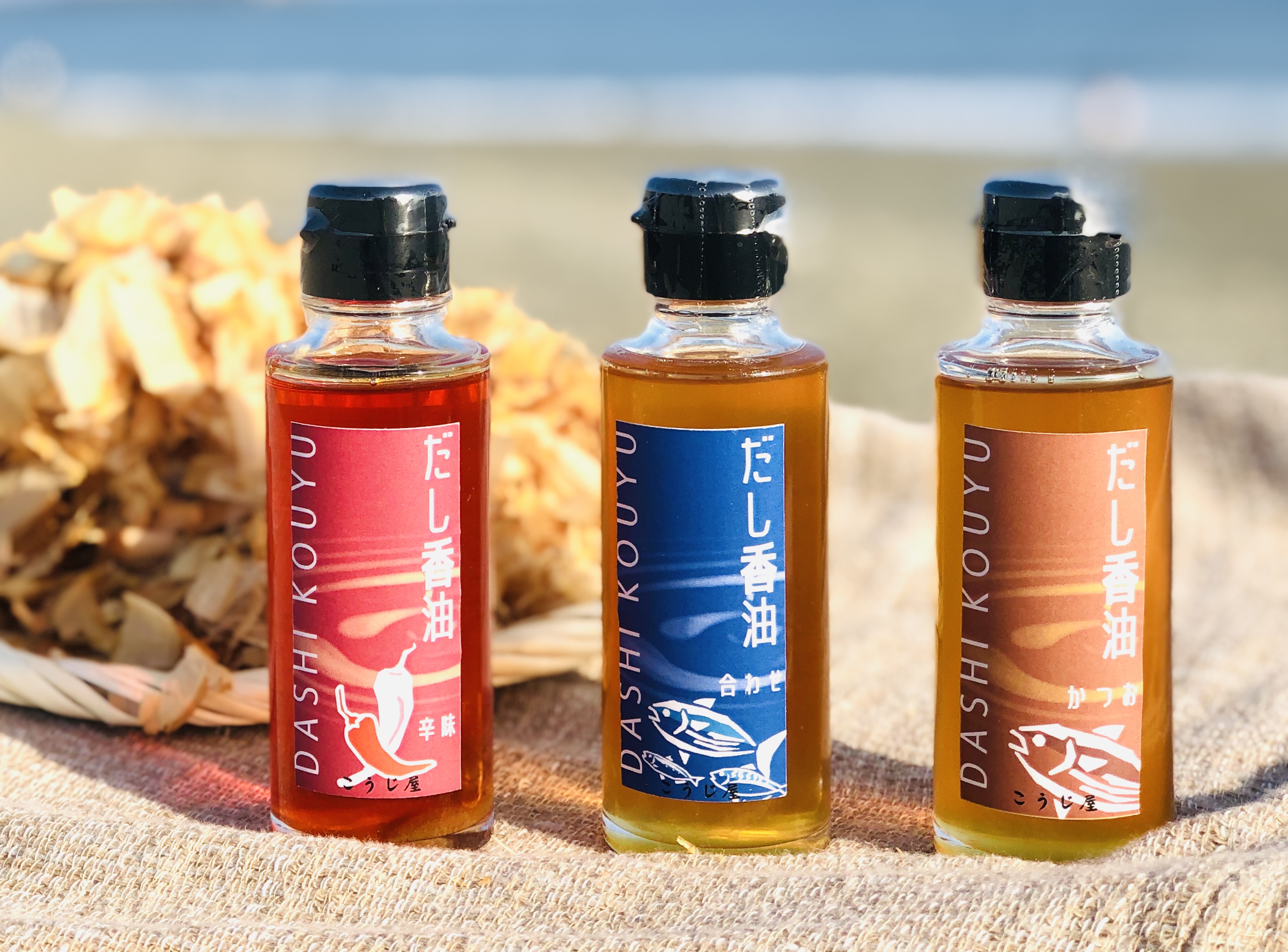 油脂製造を行うこうじ屋(所在地:神奈川県海老名市、代表:宮田 耕司)は、魚介の旨味と風味を長時間かけて油に移し、ちょい足しで使える調味料『だし香油』3種(かつお・合わせ・辛味)を、クラウドファンディングサイト・CAMPFIRE(キャンプファイヤー)にて、2022年4月24日(日)まで先行予約販売をいたします。