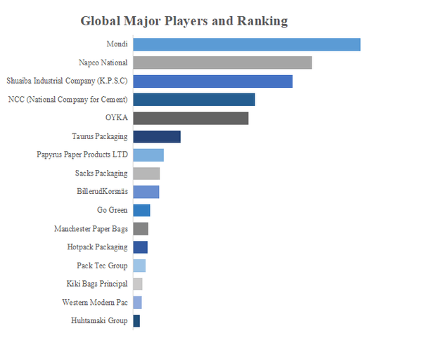 QYResearchのトップ企業研究センターによると、紙袋の世界的な主要製造業者には、Mondi、Napco National、Shuaiba Industrial Company (K.P.S.C)、NCC (National Company for Cement)、OYKA、Taurus Packaging、Sacks Packaging、Papyrus Paper Products LTD、BillerudKorsnäs、Go Greenなどが含まれている。2022年、世界のトップ10企業は売上の観点から約41.0%の市場シェアを持っていた。