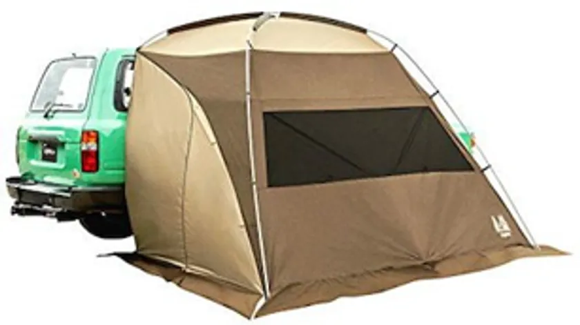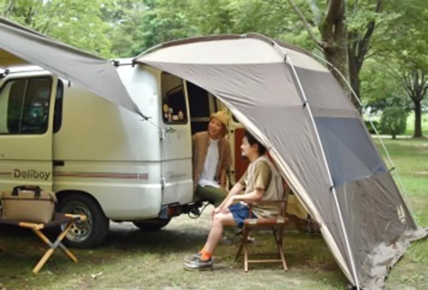 タープは使い方が難しいのに対し、カーサイドシェルターは冬でも風の影響を受けづらく、車の窓を開けると車もテントの中のようで、秘密基地みたいな楽しみ方が可能。最近は、車と一緒にキャンプを楽める道具が人気。