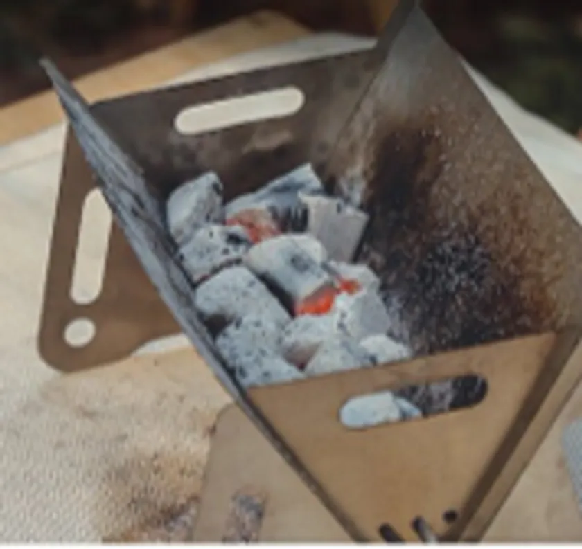 焚き火台は焚き火だけでなく、網を置くとBBQもできる一石二鳥なアイテム。カップルなど、数人でキャンプするときは、ミニタイプの方が、煙も少なくておすすめ。YUUCAさんは、焚き火での炭火で焼き鳥を楽しむこともあるそう。