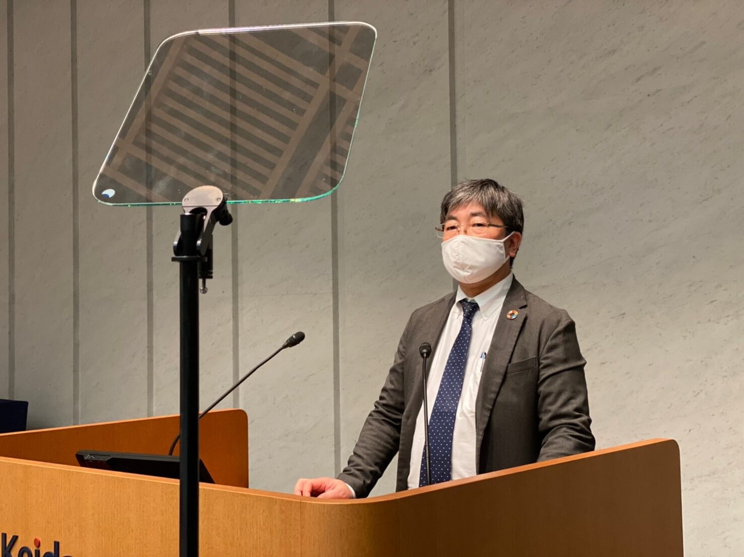 コロナ禍となった2020年以降は、会場にも株主が出席しながらライブも配信するといった「ハイブリッド型株主総会」の形式を取る企業様でのスピーチプロンプターの導入が非常に増えております。議長卓から聴衆に目線を向けながら原稿が読め、さらにライブ配信では議長のお顔が上がった映像を株主様に見ていただくことができるので非常に好評をいただいております。議長台に平置きした紙の議事を読むとどうしても視線が下がってしまうので、違いは一目瞭然です。