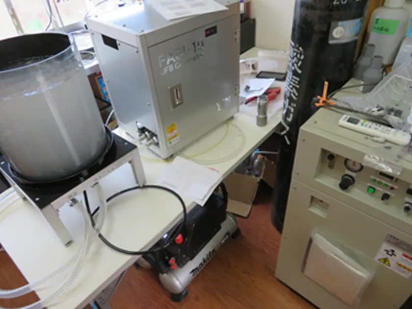 試験風景(オゾン生成器、ウルトラファインバブル発生器)