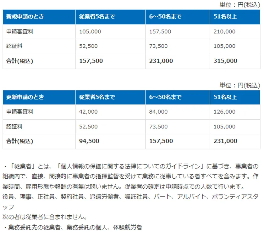 審査費用( https://japhic.or.jp/j_mark/terms )は従業員6名~50名までの場合、申請料金が157,500円、審査料が73,500円で計231,000円となります。