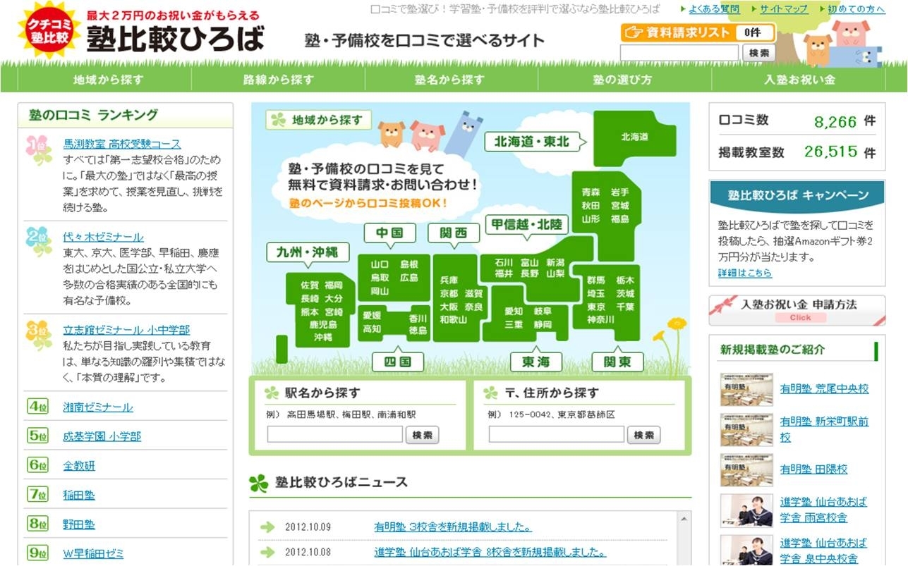1.全国各地の塾・予備校を比較し、どこに通うかを選ぶことができるポータルサイトです。
