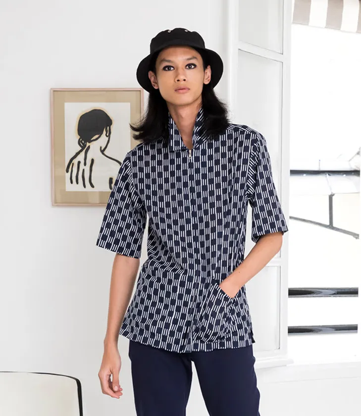 ファムでは、エレガントなロックスタイルを筆頭に、キモノからインスピレーションを得てデザインされたシャツとパンツのセットアップやアニエスベー本人が撮影したフォトプリントのミニドレスなどシックなアイテムが登場。コットンを中心とした軽やかな素材で仕立てた、初夏を感じるラインアップが魅力です。