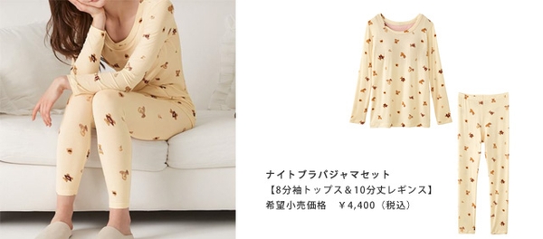 アイテムは、ロングスリーブのトップス単品、8分袖トップスと10分丈レギンスのセット、ワンピースをラインアップ。素材には、マシュマロタッチのやわらかな肌触りの素材に保湿性の高いシアバター加工でお肌へのやさしさもプラスしました。カラーはパウダークリーム(クマ柄プリント)、スモークピンク、チャコールグレーの3色でリラックスシーンをかわいく演出します。