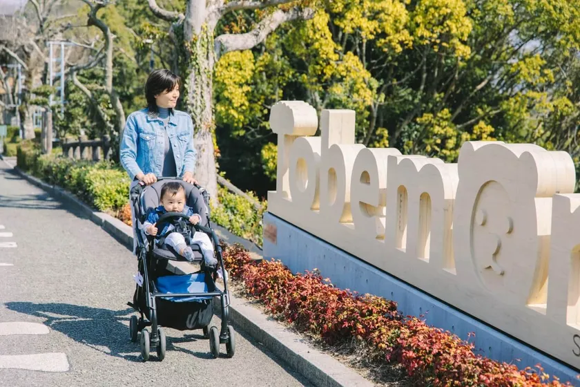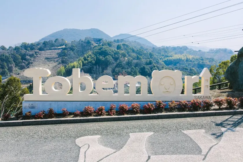 愛媛県立とべ動物園内のアトラクション乗り場にフォトスポットとして設置。横6mの迫力が人を集め、記念撮影にも人気の場所です。(既存のロゴマーク「Tobemori」を使用)