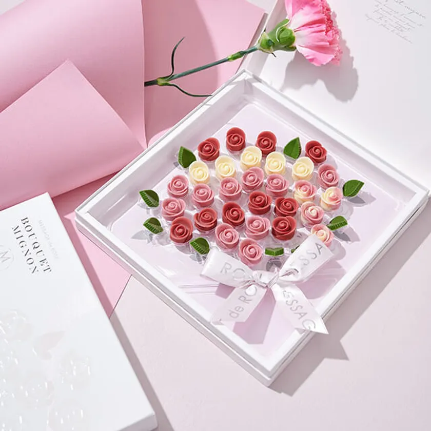 メサージュ・ド・ローズでは薔薇をモチーフにした華やかなチョコレートギフトを、ご予算に合わせてお選びいただけるようご用意しております。