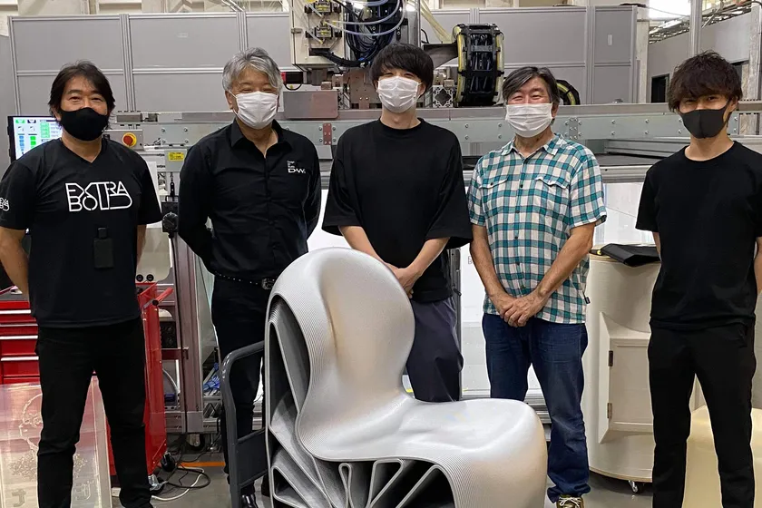 再会した北畠から「自分用のレーシングゲームフレームを作りたいのだけど、デザイン頼めますか?」と相談を持ち掛けられた水野は「面白そうですね、是非やらせてください!」と即答したのでした。しかし、北畠の望む世界観は困難なものでした。クルマのボディラインのように美しくハイライトが揺らぐフレームを望んでいたのです。それは正にクルマそのものを作り出すようなリクエストでもありました。水野は「コストを掛ければシミュレーターのようなボディのある機台は作れるが、それでは既に存在しているし斬新さは無い。北畠さんが望んでいるのは、彼の持つ世界観を僕のアイデアで解決して欲しいということだ。」と考え悩みました。美しさだけを追求しても、作れないアイデアでは期待に応えたことにならないからです。プロダクトデザインとは作ることまでを完成としてアイデアを練ることにあるのです。「やるからには、誰もが驚くオモシロイものを生み出したい!」と頭を巡らせていた水野は、ある記事と出会いました。純国産の大型3Dプリンタの記事でした。「これだ!」と閃いた水野は、早々にアポイントを取り付け、2021年10月に北畠と共に3Dプリンタ開発元の株式会社ExtraBold(所在地:東京都豊島区、代表取締役:原 雄司)を訪ねたのです。