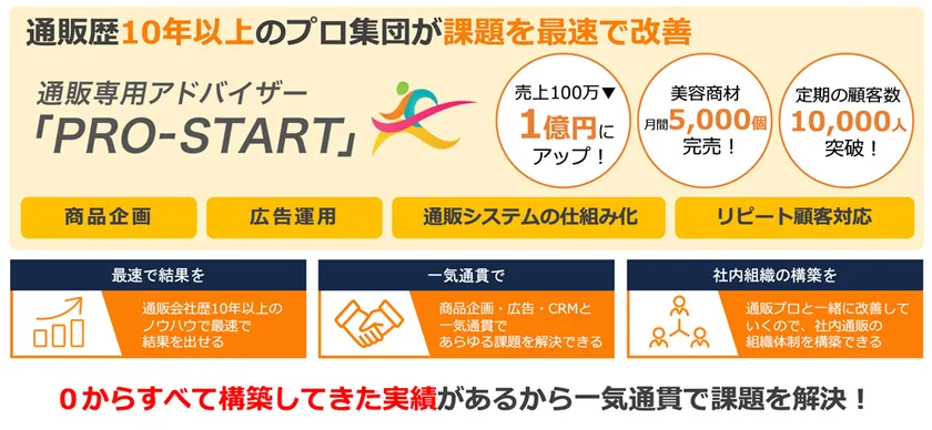 通販歴10年以上のプロ集団がノウハウで課題を最速改善! 通販専用アドバイザー「PRO-START」を10社限定リリース