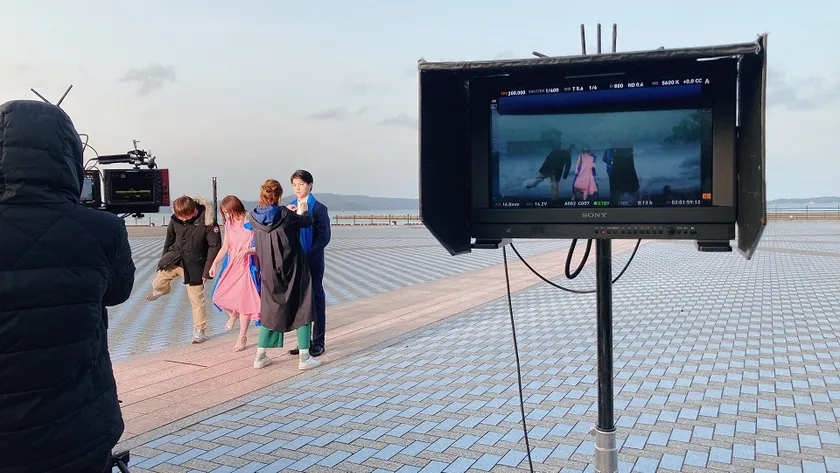 モデルのおふたりが歩くシーンは夕方からの撮影でした。
