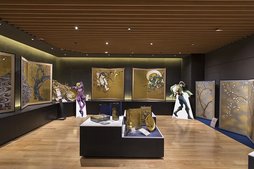 本店 箔巧館では地下1階から2階の各所に、6人のキャラクターのスタンディを設置。写真スポットをご用意いたします。(兼六園店ではジョルノ・ジョバァーナ、東山店では空条承太郎、空条徐倫のスタンディのみ設置)