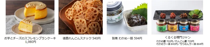 地元生産者様から毎日届く、鳴門金時やれんこんをはじめとする地域特産品を販売するほか、特産品を活用した道の駅オリジナル開発の加工品も多数ご用意いたします。