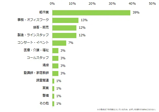 ★ 応募職種で最も多いのは「軽作業」、勤務期間は「1日のみ」が最多。